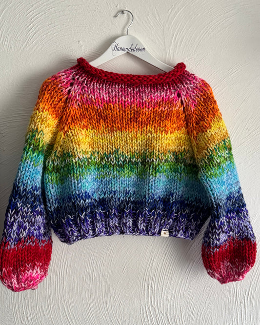 Handmade Mega Rainbow Jumper – Chunky Knit Sweater, UK Size 10-12