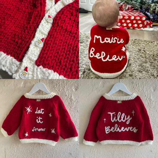 Hand-Knitted Chunky Cardigan with Daisy Embellishments – Custom-Made in Any Size & Color