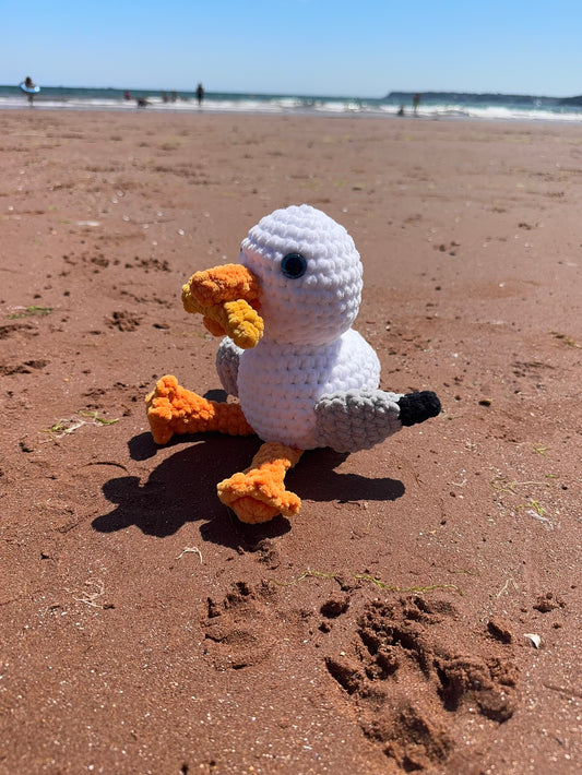 Cheeky Crochet Seagull Plush Toy with Chip – Handmade Amigurumi Bird for Coastal Gifts & Nursery Decor