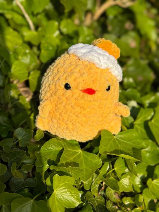 Soft Handmade Chick Plush – Chenille Yarn Chick with Optional Egg Hat