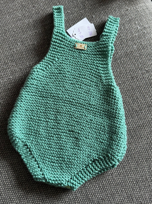 Personalised Green Knitted Baby Romper – Custom Keepsake (6-12M) | Handmade Milestone Outfit